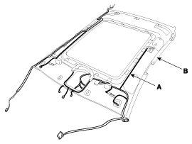 Отсоедините жгут проводов обивки крыши (А) от обивки крыши (В).