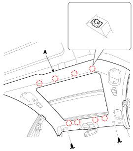 Снимите монтажный зажим обивки крыши и снимите обивку крыши в сборе (А).