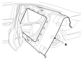 Снимите узел отделки крыши (А) с панели кузова и вынесите его из автомобиля через заднюю дверь.