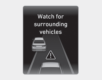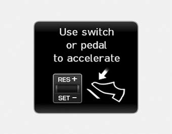 Если автомобиль впереди (скорость автомобиля: менее 20 миль/ч (30 км/ч)) исчезает на следующую полосу, прозвучит предупреждающий звуковой сигнал и появится сообщение. Регулировать скорость вашего автомобиля для транспортных средств или объектов, которые могут внезапно появиться перед вы, нажав на педаль тормоза.