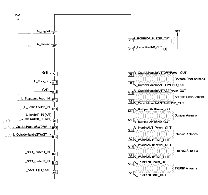 Руководство по обслуживанию Hyundai Sonata LF 2014-2019: Компоненты замка капота и расположение компонентов