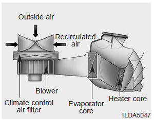 Обратитесь к авторизованному дилеру HYUNDAI для замены воздушного фильтра системы климат-контроля. согласно графику технического обслуживания. Если автомобиль эксплуатируется в тяжелых условиях таких как пыльные или неровные дороги, более частые проверки фильтров кондиционера и требуются изменения.