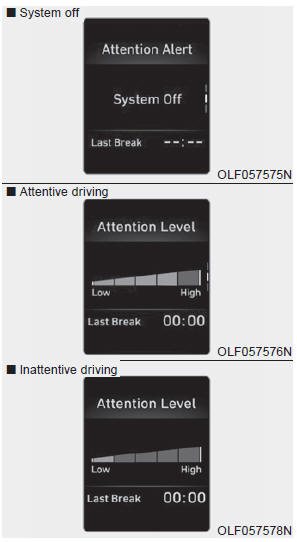 Система Driver Attention Alert работает, когда скорость движения находится в пределах 40 миль в час (60 км/ч) и 110 миль в час (180 км/ч).