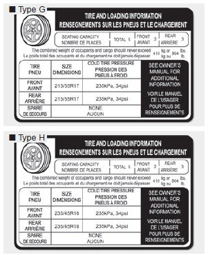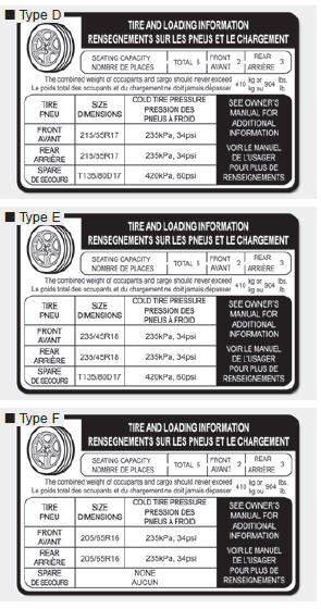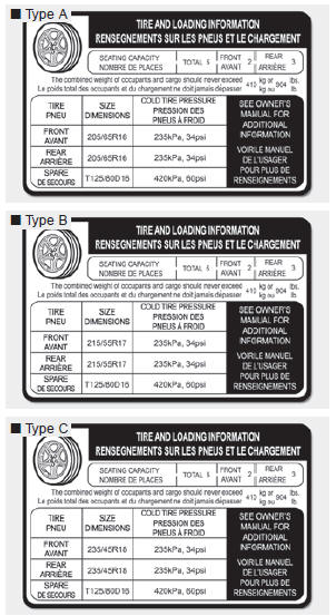 На наклейке, расположенной на пороге двери водителя, указан исходный размер шин в холодном состоянии. давление в шинах, рекомендуемое для вашего автомобиля, количество людей, которые могут находиться в ваш автомобиль и грузоподъемность автомобиля.