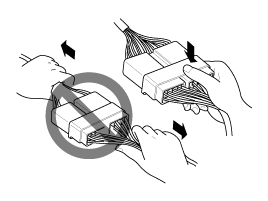 : Слегка встряхнуть разъем и жгут проводов в вертикальном, а затем в горизонтальном положении.