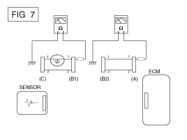 Отсоедините разъемы (A), (C) и измерьте сопротивление между разъемом (A) и заземлением шасси, как показано на [РИС. 6].