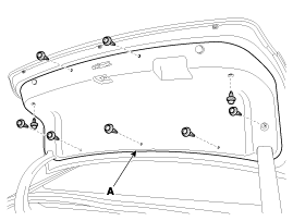 Ослабив крепежный винт и фиксаторы, снимите облицовку крышки багажника (А).