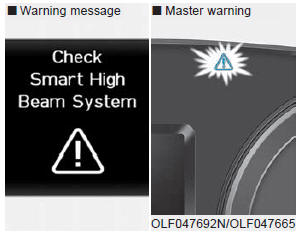Когда система Smart High Beam Assist не работает должным образом, предупреждающее сообщение загорится на несколько секунд. После того, как сообщение исчезнет, мастер предупредит загорится свет. Доставьте свой автомобиль к авторизованному дилеру HYUNDAI и система проверена.