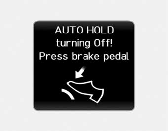 Если вы не нажали педаль тормоза, когда отпускаете функцию автоматического удержания, нажав переключатель [AUTO HOLD], прозвучит предупреждение и появится сообщение.