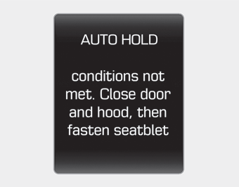 Условия AUTO HOLD не выполнены. Закройте дверь и капот, затем пристегните ремень безопасности.