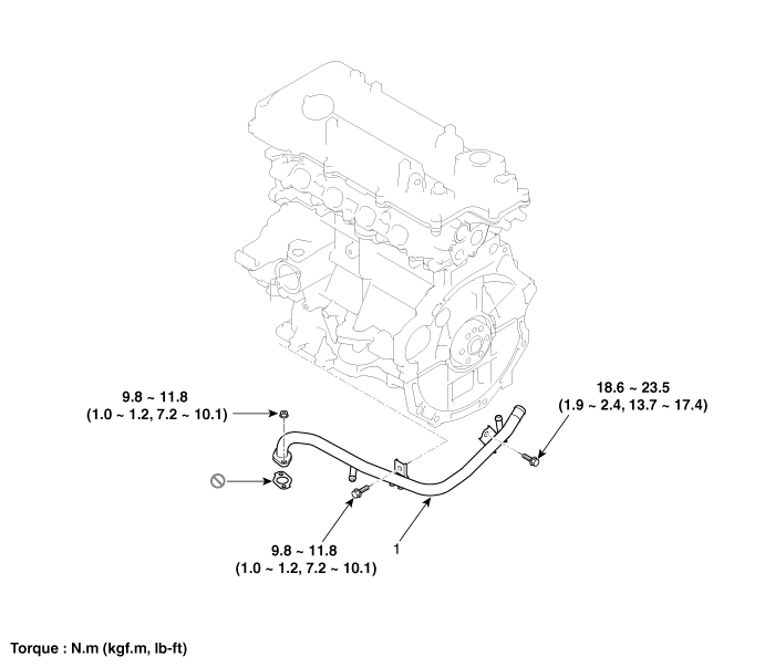 Снятие и установка 1. Снимите блок управления температурой воды. (См. Система охлаждения — «Узел управления температурой воды») 2. Снимите водопроводную трубу (А). Момент затяжки ...