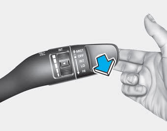 В положении OFF осторожно потяните рычаг на себя, чтобы распылить омывающую жидкость на лобовое стекло и включить дворники на 1-3 цикла. Работа распылителя и стеклоочистителя будет продолжайте, пока не отпустите рычаг. Если стиральная машина не работает, вам может понадобиться для добавления омывающей жидкости в бачок омывающей жидкости.